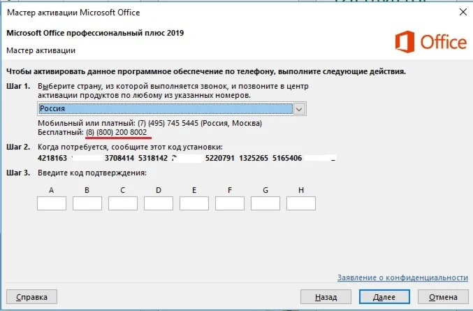 После оплаты вы моментально получаете официальный ключ для телефонной активации Office 2019 Pro Plus для 1 ПК.
