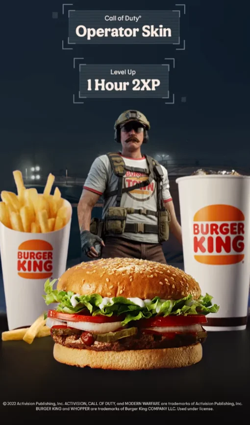 1. Название: Burger Town Operator Skin + 1 Hour 2XP [CoD MW2]